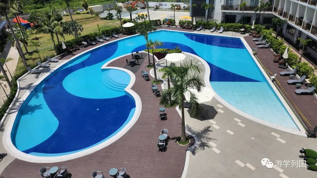 校内游泳池和小型商店:商店提供饮料、小吃和方便面;