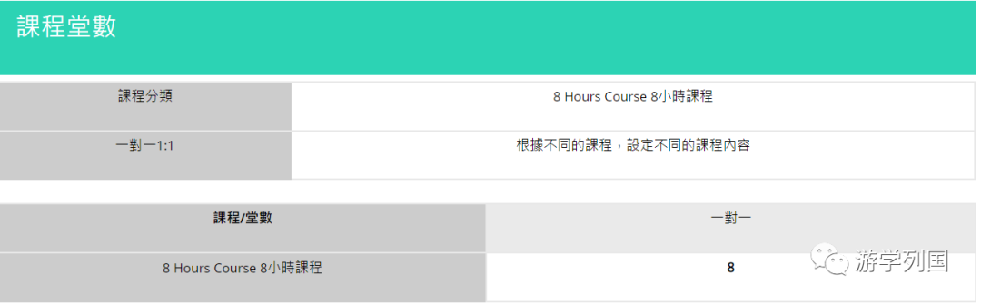 学校课程分为4 hours、6 hours、8 hours和10 hours的课程,全部都是一对一课程。