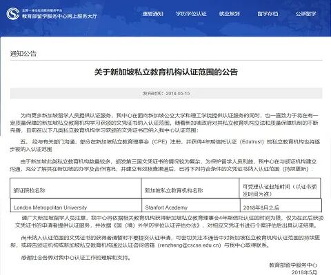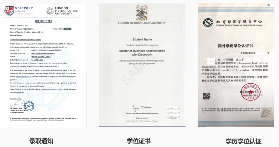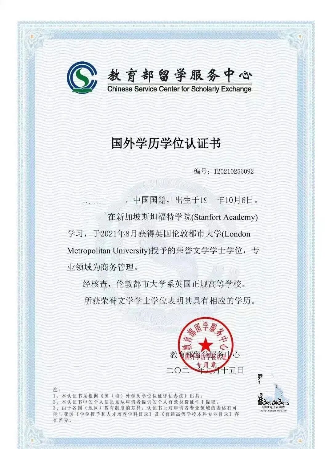 英国伦敦城市大学工商管理硕士-新加坡斯坦福特学院就读项目,得到了中国教育部留学服务中心官方认证。