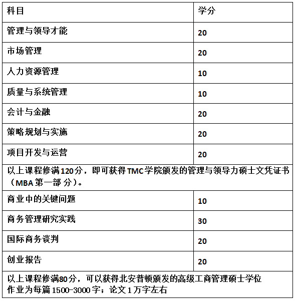 工商管理硕士(MBA)课程由英国北安普顿大学研发;与TMC学院的管理和领导力研究生文凭相结合。